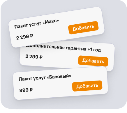 Разработали механизм, который предлагает клиентам расширенную гарантию и совместимые аксессуары на ключевых этапах воронки: в карточке товара и корзине.