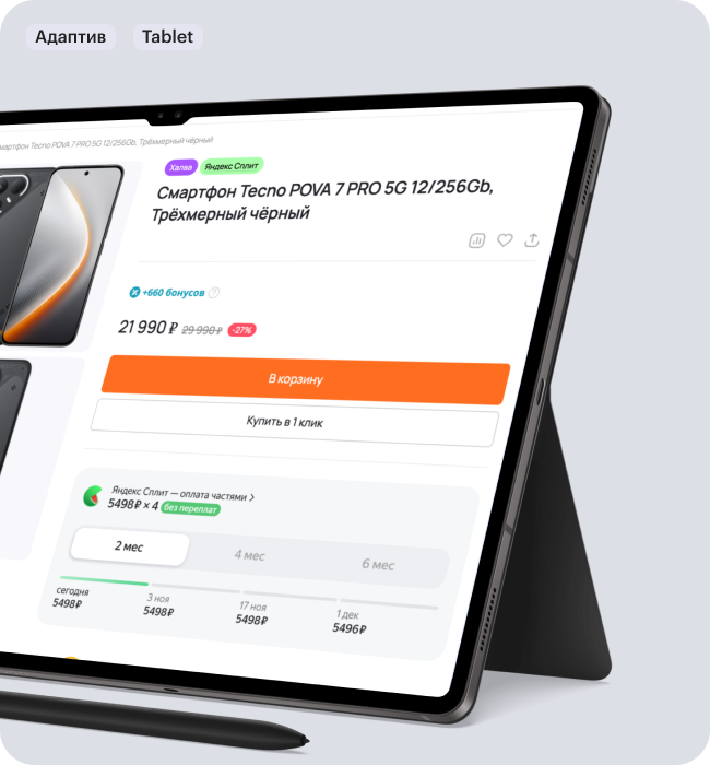 Разместили виджет оплаты частями прямо в карточках товаров. Это значительно снизило финансовый барьер для покупателей и стимулировало к покупке более дорогих гаджетов.